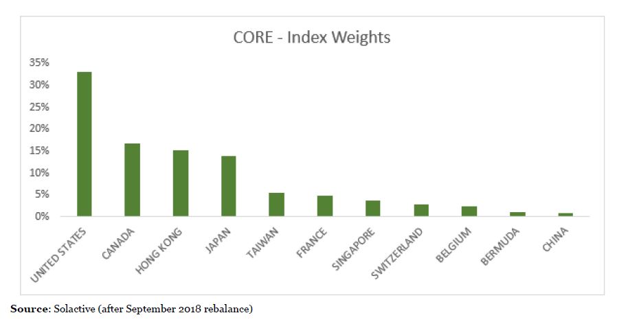 So how does CORE work? CORE is the only infrastructure ETF in Australia that runs a ‘smart-beta’ strategy to dynamically adjust its portfolio to reflect prevailing market conditions. It does so by tracking the Solactive Global Core Infrastructure Low Volatility Index (the ‘Index’). The strategy of the Index aims to outperform the wider infrastructure market by investing in stocks with the lowest realised volatility. These stocks are likely to be the ones with the most “desirable” qualities for infrastructure investors; i.e. stable returns with lower correlation to the wider equity markets.
